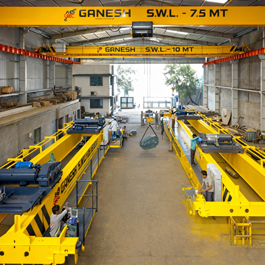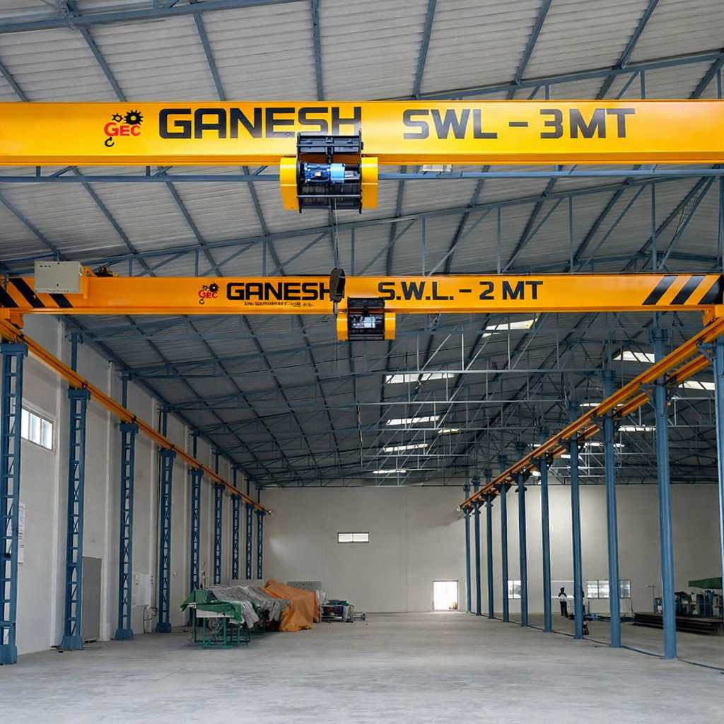 Ganesh Engineering Co. can provide a wide range of EOT (Electric Overhead Traveling) Cranes. From Single Girder EOT Crane to Double Girder EOT Crane, Top Running to Under Running, we design cranes to meet our customers’ requirements and applications. let Ganesh’s application engineers help you select which style Crane is right for your application. We design and manufacturing EOT Cranes as per IS: 807, IS: 3177, and other related Codes.